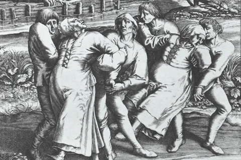 Σε πλήρη θέα του κοινού, αυτό είναι το απόγειο της χορομανίας που βασάνισε το Στρασβούργο για ένα μήνα μεσοκαλόκαιρο το 1518.