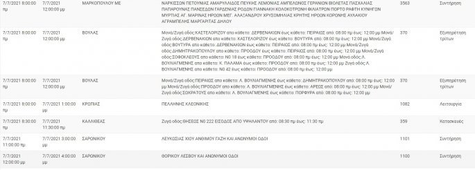 Ο ΔΕΔΔΗΕ, έχει προγραμματίσει για σήμερα Τετάρτη 7 Ιουλίου, διακοπή ρεύματος σε αρκετές περιοχές της Αττικής, στις οποίες περιλαμβάνονται το κέντρο της Αθήνας, η Γλυφάδα, ο Υμηττός η Βούλα και η Καλλιθέα.