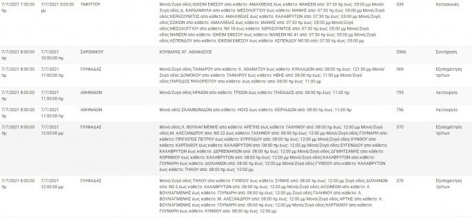 Αναλυτικά οι πίνακες με τις περιοχές της Αττικής και τις ώρες που θα σημειωθεί διακοπή ρεύματος: