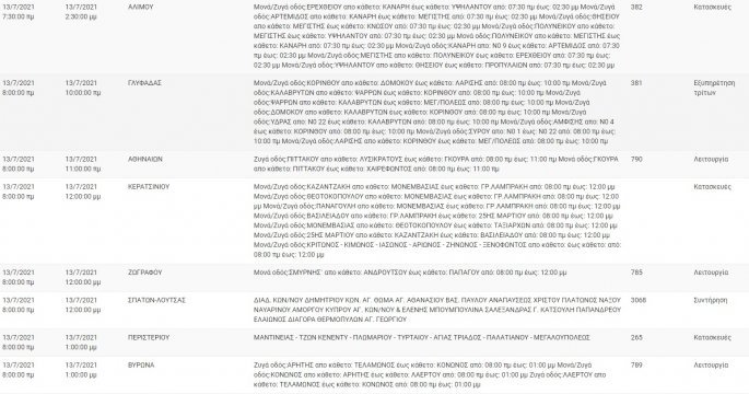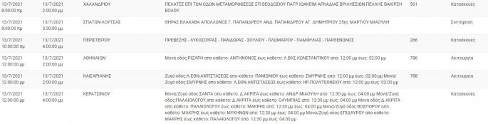 Αναλυτικά οι πίνακες με τις περιοχές της Αττικής και τις ώρες που θα σημειωθεί διακοπή ρεύματος: