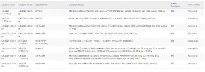 Αναλυτικά οι πίνακες με τις περιοχές της Αττικής και τις ώρες που θα σημειωθεί διακοπή ρεύματος: