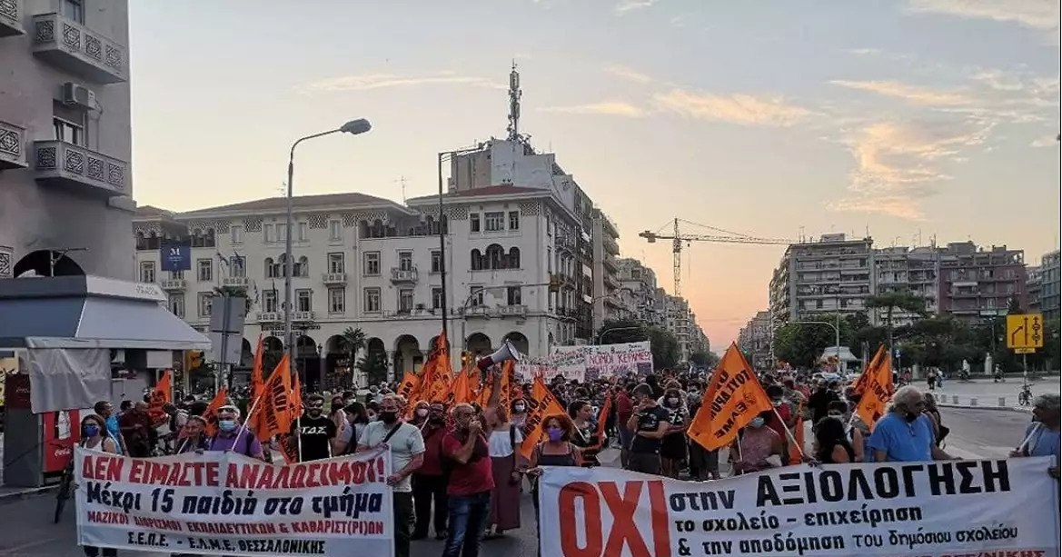 Στους δρόμους της Θεσσαλονίκης πραγματοποιούν συλλαλητήριο εκπαιδευτικοί, γονείς και μαθητές με αίτημα την ασφαλή λειτουργία των σχολείων, ενάντια στην αξιολόγηση και το νόμο Κεραμέως, στη Θεσσαλονίκη.