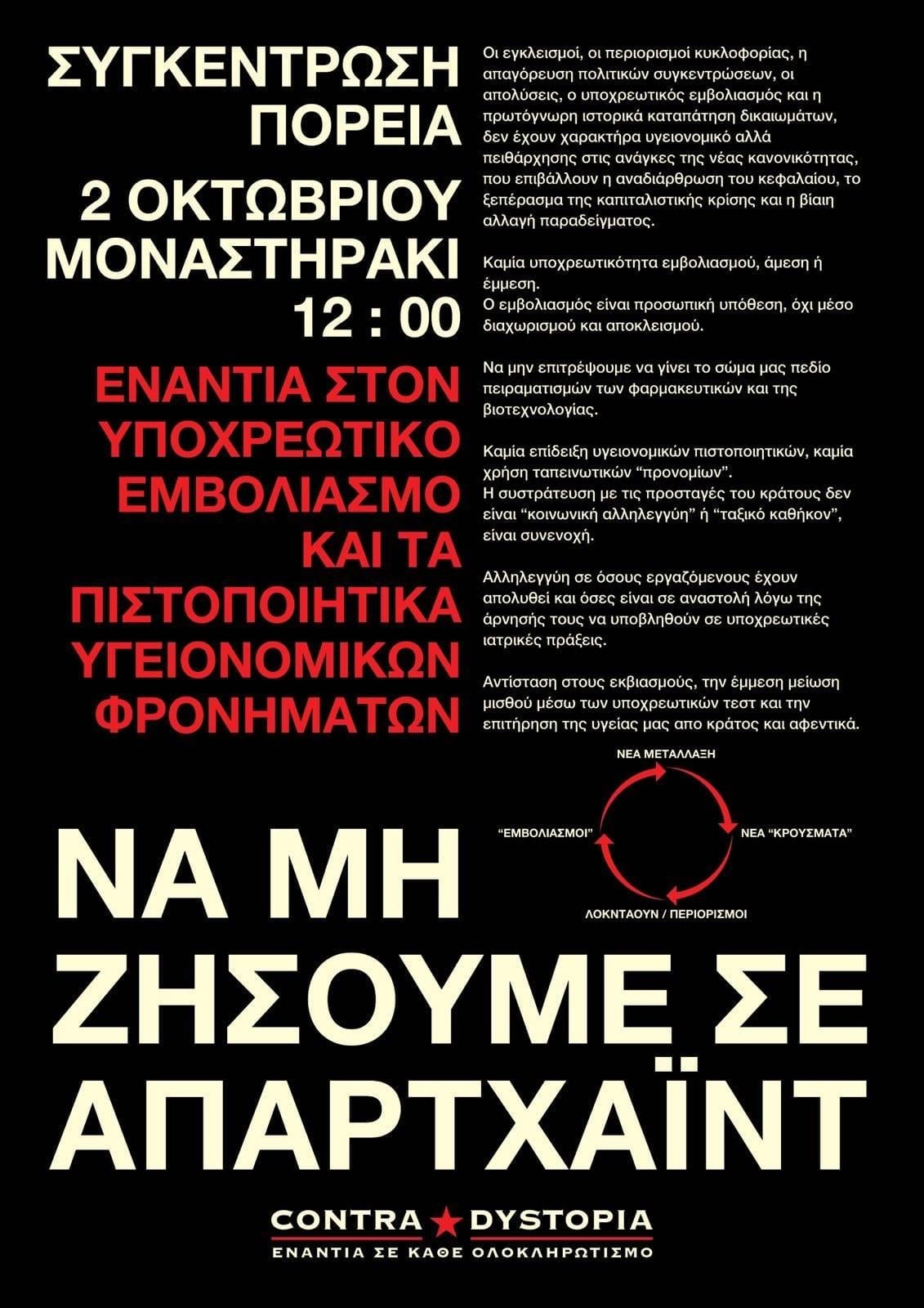Η ανακοίνωση της «Κόντρα Δυστοπία» για την συγκέντρωση