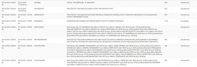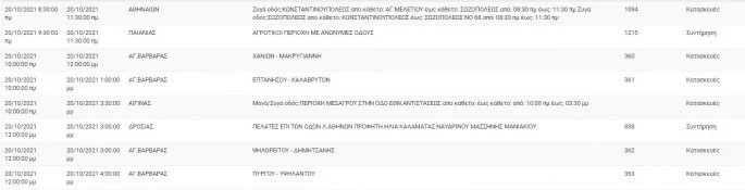 Αναλυτικά οι πίνακες με τις περιοχές της Αττικής και τις ώρες που θα σημειωθεί διακοπή ρεύματος: