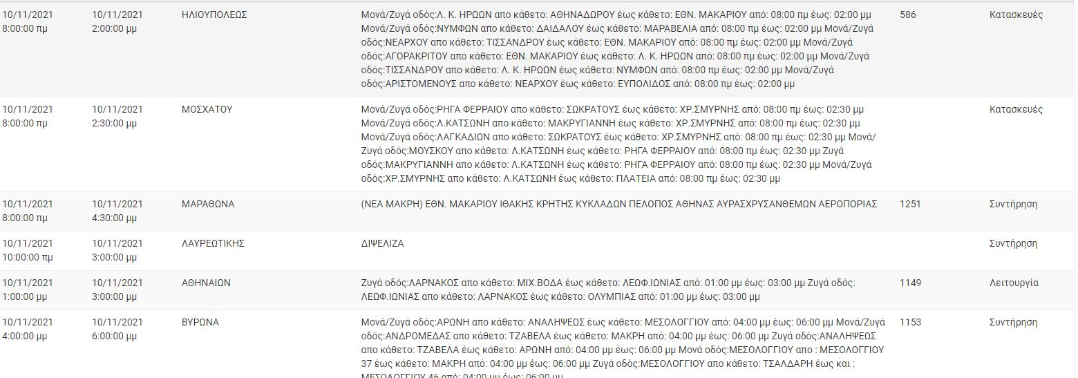 Ο ΔΕΔΔΗΕ, για σήμερα Τετάρτη 10 Νοεμβρίου, έχει προγραμματίσει διακοπή ρεύματος σε αρκετές περιοχές της Αττικής, στις οποίες περιλαμβάνονται ο Βύρωνας, το Μοσχάτο, η Ηλιούπολη και το Λαύριο.