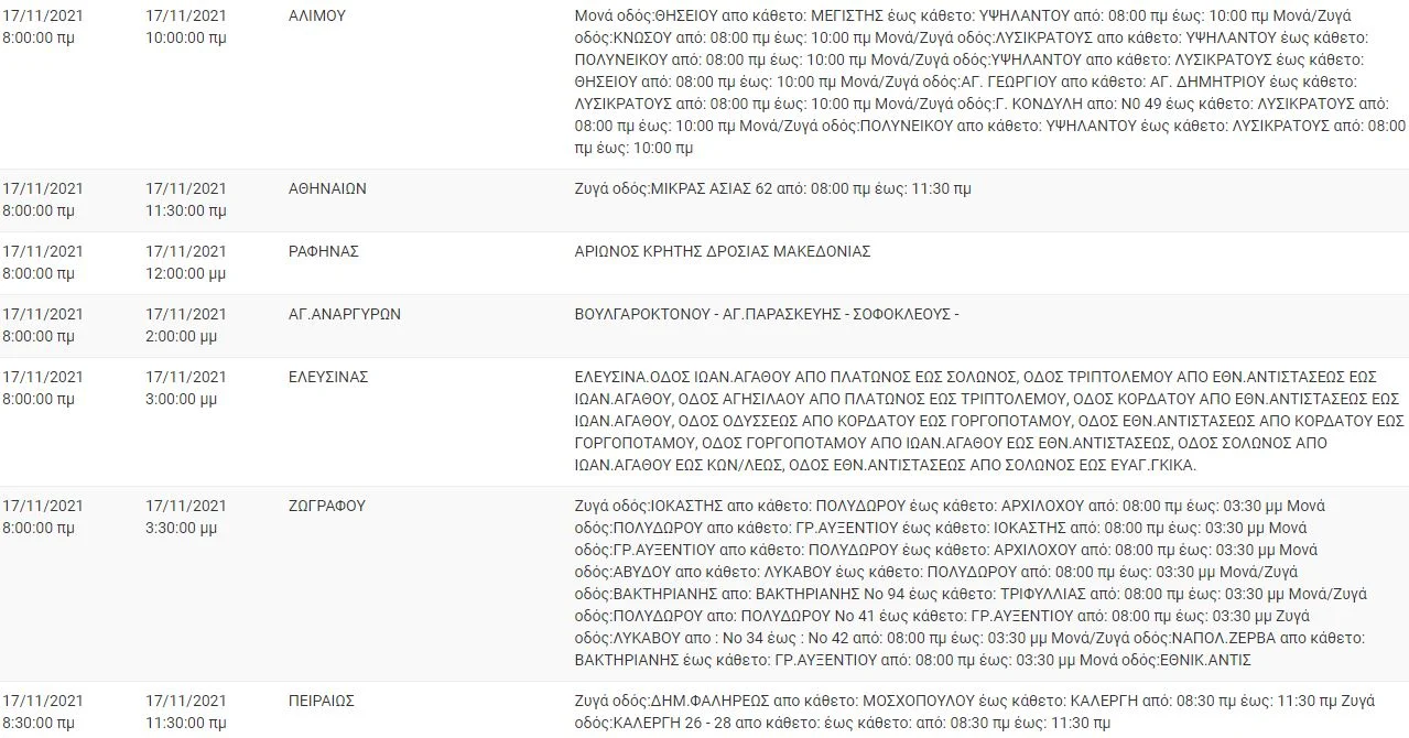 Πιο αναλυτικά, με βάση την επίσημη ανακοίνωση του ΔΕΔΔΗΕ, διακοπές ρεύματος θα γίνουν μεταξύ άλλων σε Αθήνα, Άλιμο και Ραφήνα.