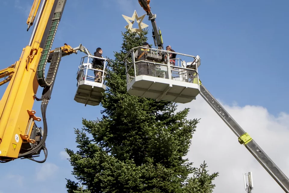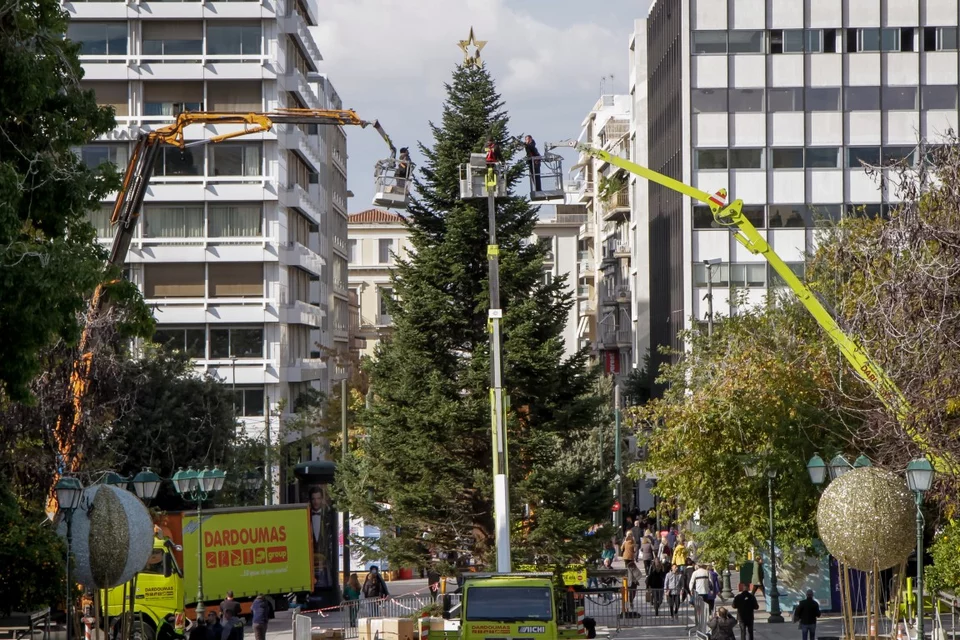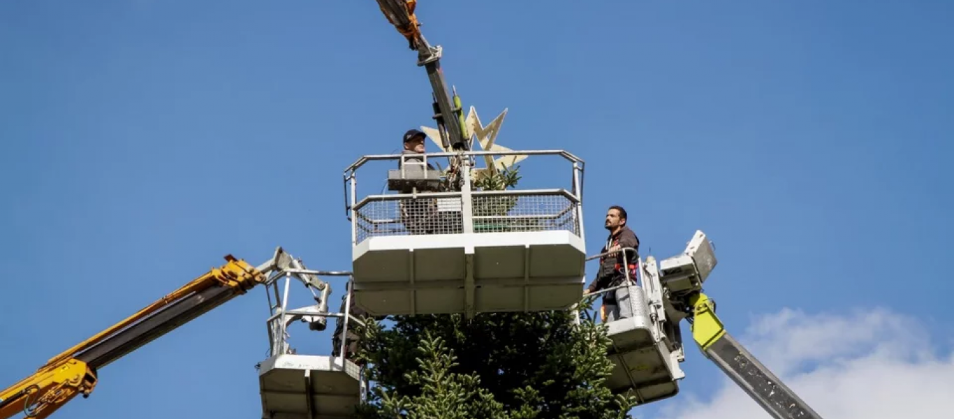 Νωρίς το πρωί του Σαββάτου 20 Νοεμβρίου, ξεκίνησε η τοποθέτηση των στολιδιών στο δέντρο της πλατείας Συντάγματος.