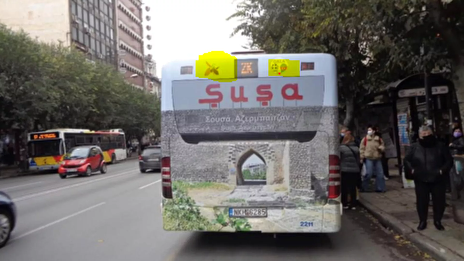 Το πρωί της Τρίτης 23 Νοεμβρίου, λεωφορείο του ΟΑΣΘ εμφανίστηκε στους δρόμους της Θεσσαλονίκης με το πίσω μέρος του λεωφορείου να είναι ντυμένο από πάνω ως κάτω με μια φωτογραφία που απεικονίζει ένα κάστρο και πάνω σε αυτό γράφει «Susa», δηλαδή την αρμένικη πόλη που πλέον ανήκει στο Αζερμπαϊτζάν.
