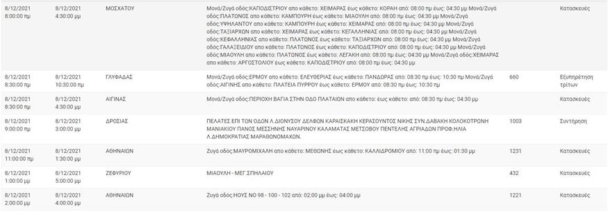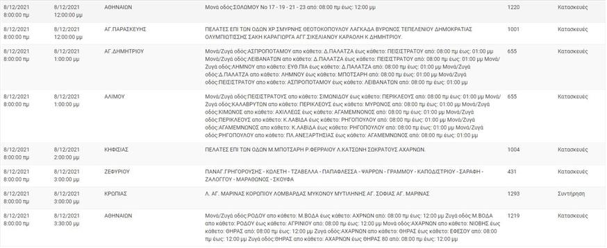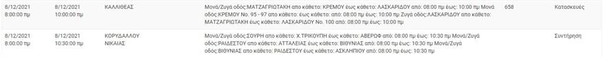 Αναλυτικά οι πίνακες με τις περιοχές που έχει προγραμματιστεί διακοπή ρεύματος: