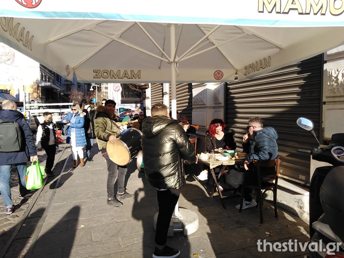 Στην οδό Βασιλέως Ηρακλείου, στήθηκε ένα μικρό γλέντι το μεσημέρι της Παρασκευής, έξω από τα οβελιστήρια. Μουσικοί του δρόμου, έπαιξαν με τα παραδοσιακά τους όργανα διάφορους σκοπούς δίνοντας μια ευχάριστη νότα στις δύσκολες ημέρες που βιώνει η ανθρωπότητα και για λίγο ορισμένοι πολίτες που απολάμβαναν το φαγητό τους στο σημείο ήρθαν στο… κέφι.