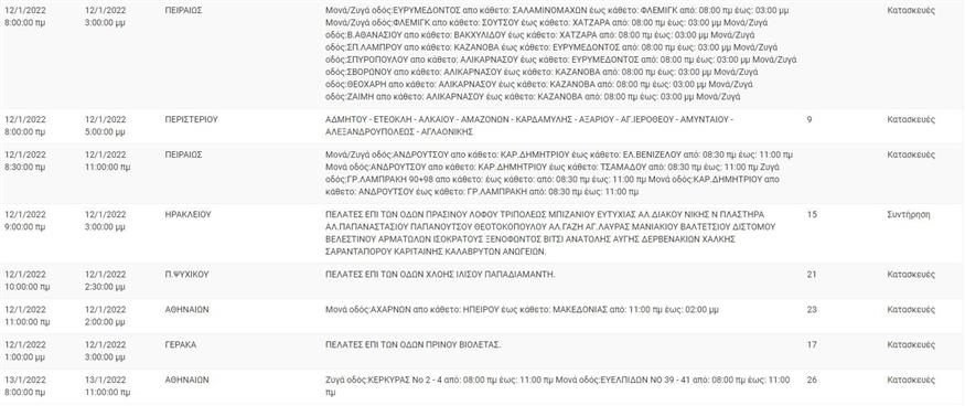 Ο ΔΕΔΔΗΕ, για σήμερα Τετάρτη 12 Ιανουαρίου, έχει προγραμματίσει διακοπή ρεύματος σε αρκετές περιοχές της Αττικής, στις οποίες περιλαμβάνονται το Κέντρο της Αθήνας, το Περιστέρι, ο Πειραιάς και η Παιανία.
