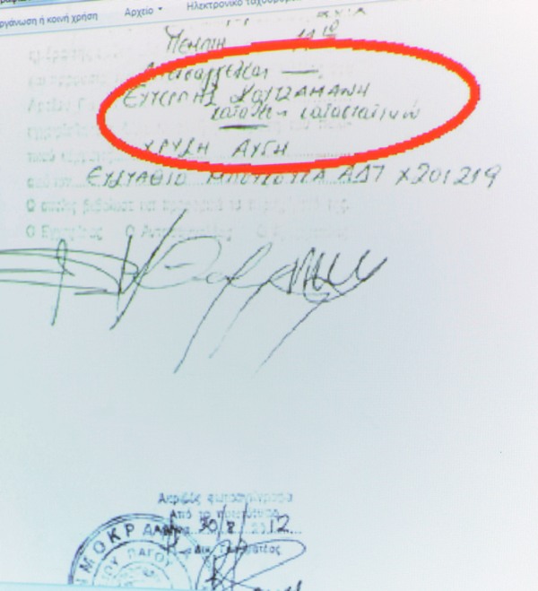 Διαφάνεια 4 (11:25 του βίντεο) – Η υπογραφή της κας Ευτέρπης Κουτζαμάνη στο επίσημο καταστατικό της Χρυσής Αυγής