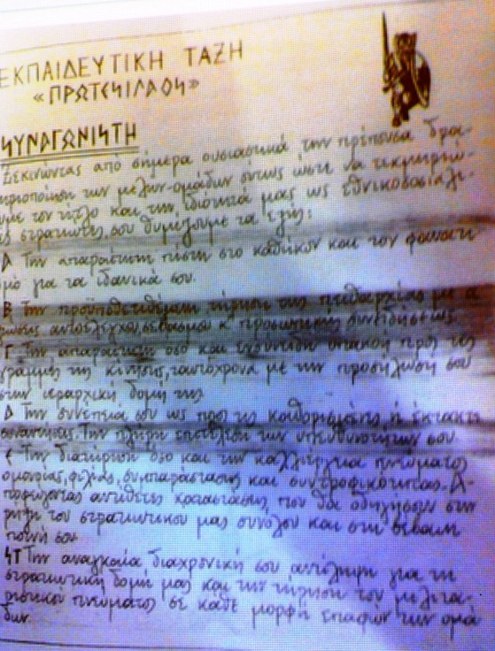 Διαφάνεια 5 (11:55 του βίντεο) – Το ψευδεπίγραφο καταστατικό που περιλαμβάνεται στο κατηγορητήριο (είναι γραμμένο με στυλό και φέρει ζωγραφικό σχέδιο καρικατούρα!)