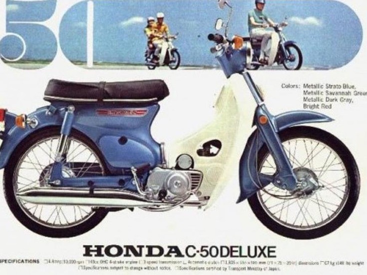 Ο μακροχρόνιος συνεργάτης του Χόντα μπήκε μια μέρα στο σχεδιαστήριό του και του ζήτησε να φτιάξει το μηχανάκι με τρόπο που να μπορεί να οδηγηθεί με το ένα χέρι, ώστε να μπορούν οι ντελιβεράδες του Τόκιο να κουβαλούν στο άλλο τις παραγγελίες με τα νουντλς! «Αν μπορέσεις να σχεδιάσεις μια μικρή μοτοσικλέτα, ας πούμε 50 κυβικών, με ένα κάλυμμα για να κρύβει τη μηχανή, τους σωλήνες και τα καλώδια στο εσωτερικό, τότε μπορώ να την πουλήσω. Δεν ξέρω πόσα μαγαζιά με νουντλς υπάρχουν στην Ιαπωνία, αλλά σε πάω στοίχημα ότι κάθε κατάστημα θα θελήσει μία για τους ντελιβεράδες του».