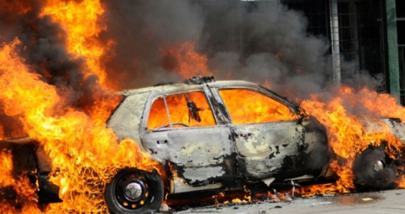 Μέχρι οι πυροσβέστες να σβήσουν τις φλόγες η κυκλοφορία διεκόπη για λίγα λεπτά…