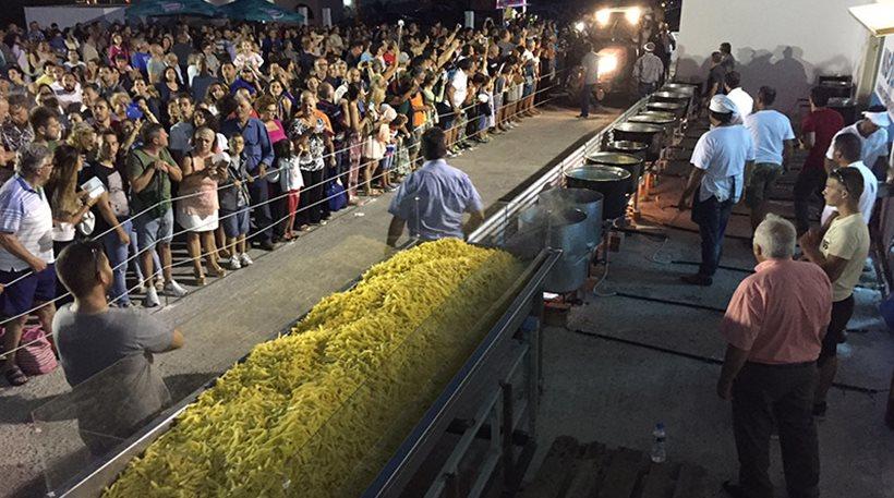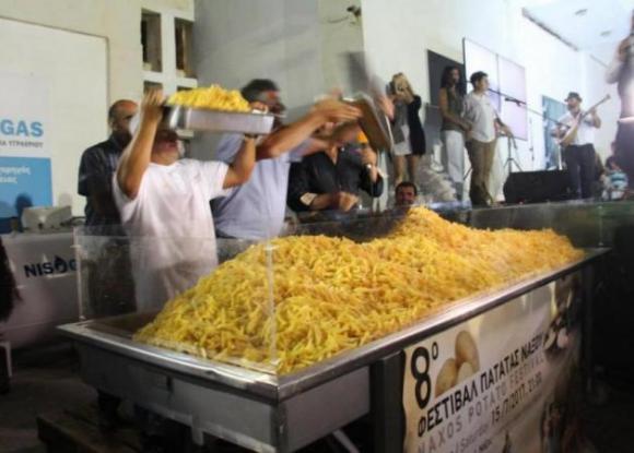 Στο διάσημο βιβλίο των παγκόσμιων ρεκόρ μπαίνει η Νάξος, αφού οι Ναξιώτες έσπασαν χθες βράδυ το ρεκόρ που κατείχε από το 2014 το Αΐνταχο, σερβίροντας μια τεράστια μερίδα τηγανητές πατάτες βάρους 554 κιλών στους καλεσμένους του 8ου φεστιβάλ πατάτας!
