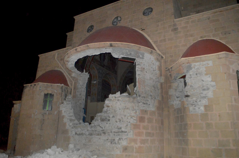 Όπως φαίνεται στις φωτογραφίες, το Ιερό του Μητροπολιτικό Κέντρο του Αγίου Νικολάου κατέρρευσε, ενώ ζημιές σημειώθηκαν και στον ναό της Αγίας Παρασκευής.