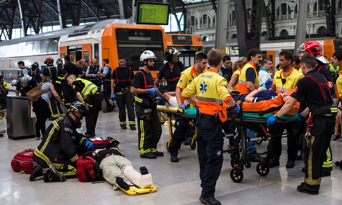 Το ατύχημα σημειώθηκε στις 07:15 (τοπική ώρα, 08:30 ώρα Ελλάδας) όταν το επαρχιακό τρένο προσέκρουσε στο διάζωμα στον σταθμό της Γαλλίας, στο ιστορικό κέντρο της Βαρκελώνης, σύμφωνα με τη δημόσια εταιρία σιδηροδρόμων Renfe.