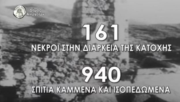 Αυτό το μήνυμα στέλνουμε μέσα από το συγκεκριμένο βίντεο το οποίο θα προβάλλεται μέχρι και τις 13 Αυγούστου οπότε θα τιμήσουμε τη μνήμη των πεσόντων αλλά και των αγωνιστών από το ολοκαύτωμα των Ανωγείων από τους Ναζί. Οι 161 νεκροί μας και οι 940 ισοπεδωμένες οικίες δεν στάθηκαν ικανές πληγές για να πάψουμε να υπάρχουμε. Πήραμε δύναμη από τα τραύματα μας και σηκώσαμε το μπόι μας και πάλι, σηκώσαμε τα παιδιά μας στις αγκαλιές μας και προχωρήσαμε μπροστά φτάνοντας οι Ανωγειανοί με σεβασμό και ταπεινότητα, αλλά πάντα άξιοι και με αξίες άνθρωποι σε κάθε γωνιά της γης».