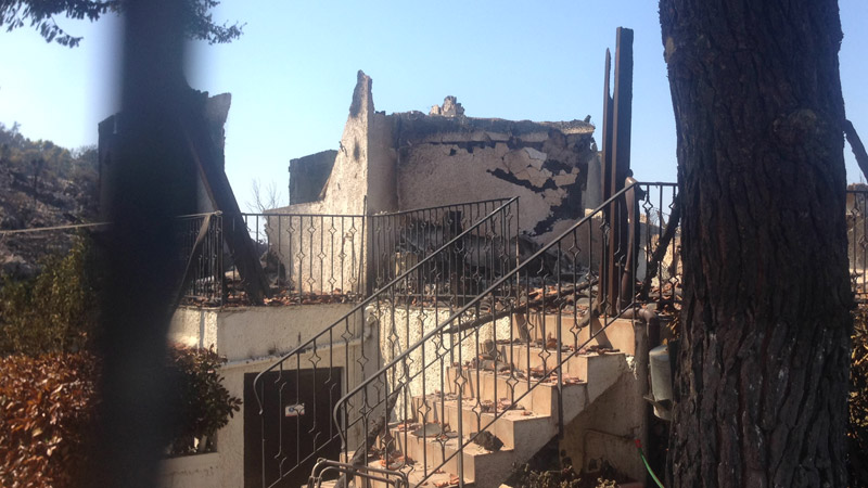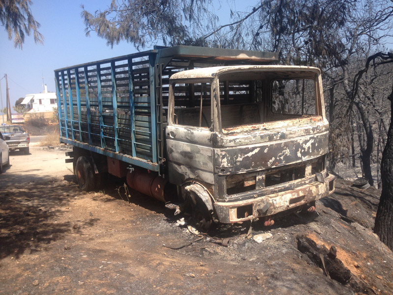 «Έχασα την περιουσία μου, κάηκε το φορτηγό μου γιατί κοίταζα να σώσω το σπίτι μου από τη φωτιά» είπε μεταξύ άλλων ο Βασίλης μόνιμος κάτοικος του Καλάμου.