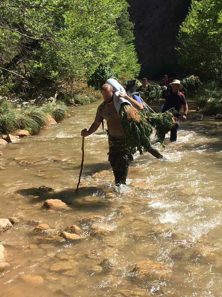 Στην πλάτη τους μετέφεραν επί χιλιόμετρα μέσα σε δάσος και σε ποτάμια οι αστυνομικοί τα κατασχεμένα δενδρύλια κάνναβης, από φυτεία που είχαν μόλις εντοπίσει στην Αιγιαλεία.