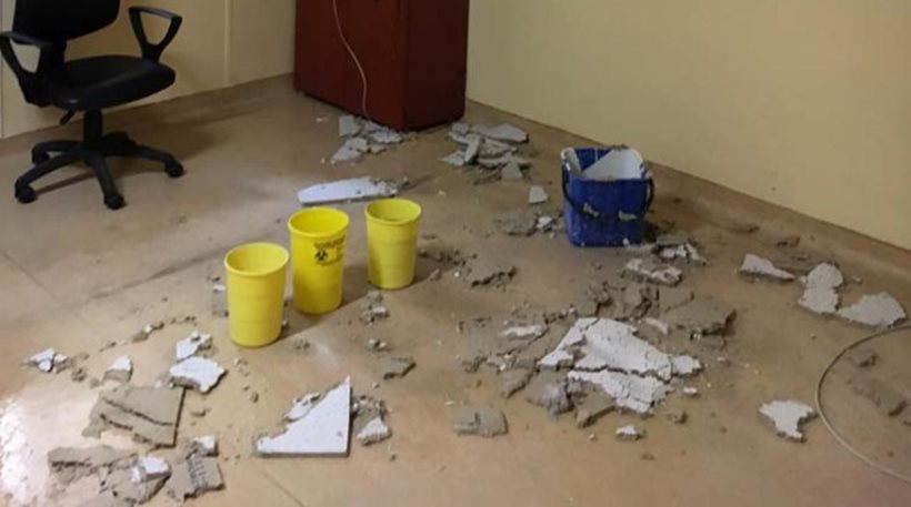 Πανεπιστημιακό νοσοκομείο Λάρισας: Κατέρρευσε η στέγη σε γραφείο γιατρού (φωτό)