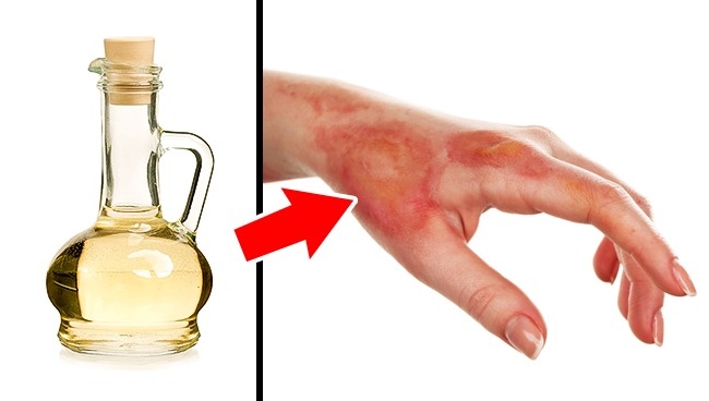 Αν έχετε κάποιο μικρό έγκαυμα, το μηλόξυδο μπορεί να σας βοηθήσει. Βυθίστε την περιοχή σε ένα διάλυμα από ξύδι και νερό, για να ανακουφιστείτε από τον πόνο και να επιταχύνετε την ανάπλαση. Καλύπτει οσμές Το ξύδι μπορεί να καλύψει τις οσμές, που σημαίνει ότι μπορεί να κρύψει τη μυρωδιά του σώματός σας από τα άγρια ζώα.