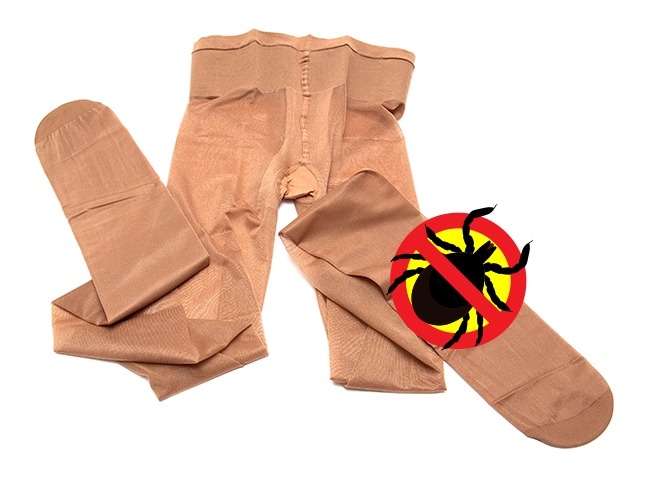 Προστατεύουν από έντομα, τσιμπούρια και βδέλλες Για να αποφύγετε τα δαγκώματα των παραπάνω, πάρτε 2 καλσόν μαζί σας. Το ένα φορέστε το κανονικά. Κόψτε τις άκρες στο άλλο, ανοίξτε μία τρύπα για το κεφάλι σας στη μέση και φορέστε το σαν μπλουζάκι. Θα βρείτε περισσότερες πληροφορίες εδώ.