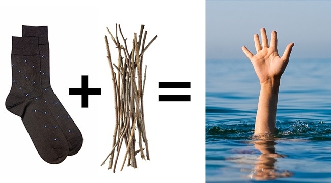 Μπορούν να σώσουν κάποιον από πνιγμό Μία κάλτσα γεμάτη ξερά κλαδιά, μπορεί να βοηθήσει στη διάσωση ενός ανθρώπου που κινδυνεύει από πνιγμό. Τα κλαδιά επιπλέουν και η κάλτσα λειτουργεί ως σωσίβιο.