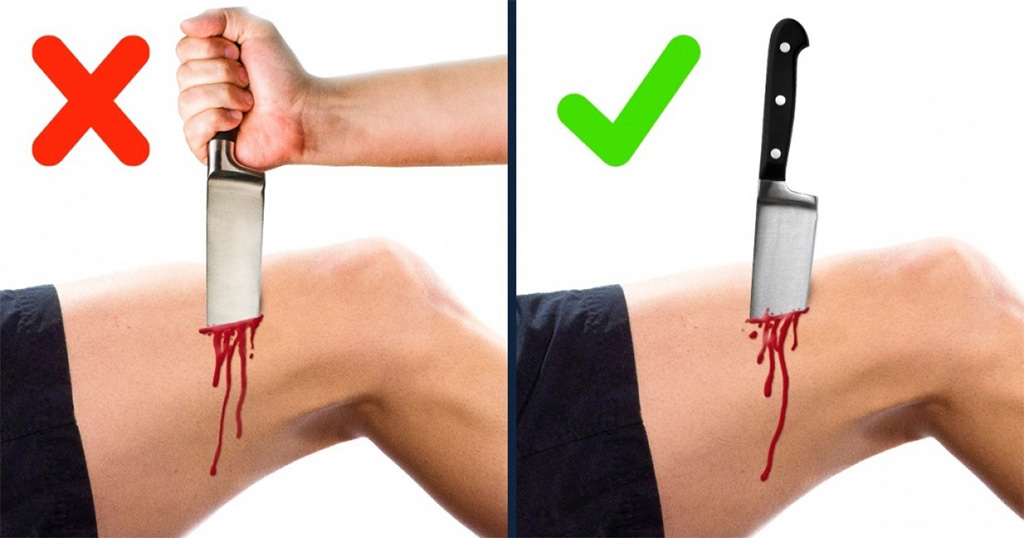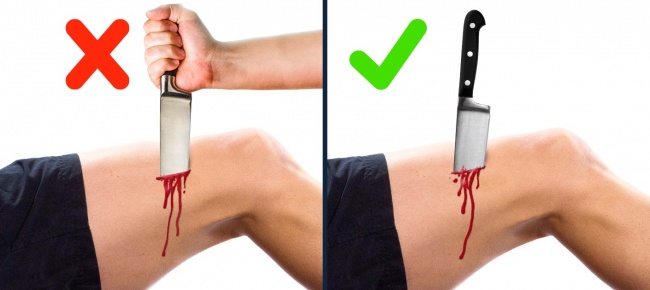 Όλα στη ζωή είναι, οπότε και τα ατυχήματα με τα μαχαίρια ή άλλα αιχμηρά αντικείμενα δεν λείπουν από τη λίστα. Στην πραγματικότητα, συμβαίνουν πιο συχνά απ’ ό,τι νομίζετε. Αν τύχει να πέσετε πάνω σε κάποιο άτυχο άτομο που έχει μαχαιρωθεί, να θυμάστε ότι δεν πρέπει ποτέ να τραβήξετε και να βγάλετε το μαχαίρι, ειδικά αν βρίσκεται στο στήθος, την κοιλιακή χώρα ή τους μηρούς. Αν το τραβήξετε, μπορεί να αφήσετε ανοιχτή κάποια φλέβα ή αρτηρία που μπλόκαρε μέχρι τώρα το μαχαίρι και να αιμορραγήσει μέχρι θανάτου. Καλύτερα να ζητήσετε ιατρική βοήθεια αμέσως, χωρίς να αγγίξετε το αντικείμενο.