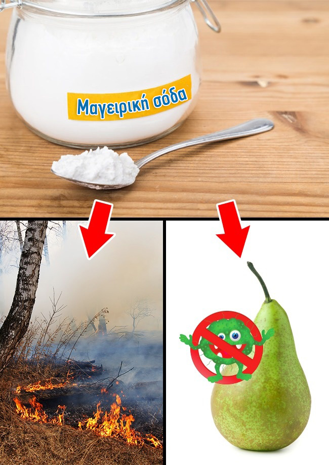 Απολυμαντικό Ένα διάλυμα από 1 κουταλάκι του γλυκού μαγειρική σόδα και 1 λίτρο νερό, θα σας βοηθήσει να απομακρύνετε επικίνδυνα βακτήρια. Μπορείτε να απολυμάνετε τα φρούτα ή τα λαχανικά σας με αυτό.