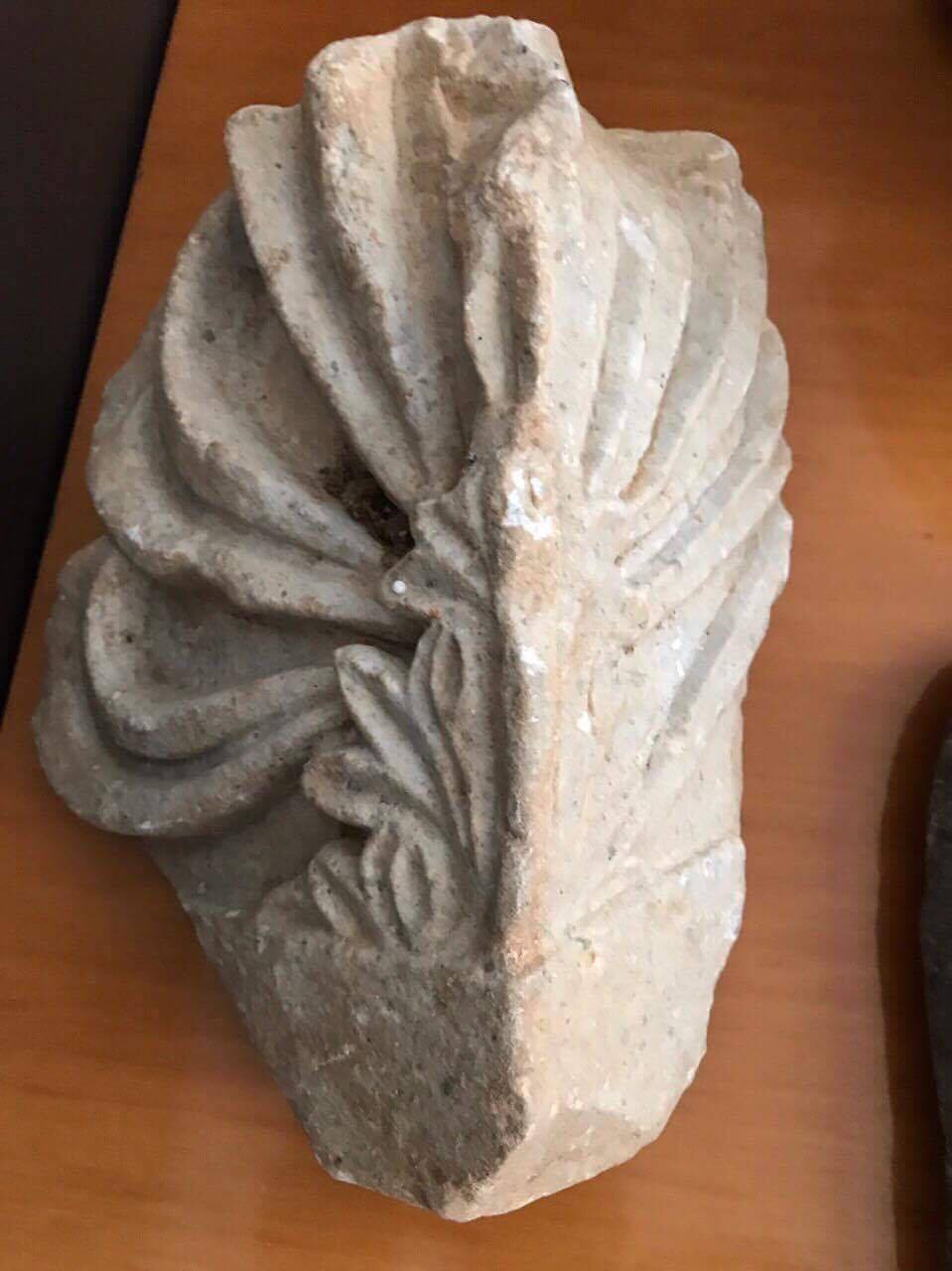 α) ένα τμήμα μαρμάρινου πεσίσκου με διακόσμηση Κορινθιακού κιονόκρανου στην εμπρόσθια όψη του, διαστάσεων 24 εκ. (ύψος), 20,5 εκ. (πλάτος) και 28,5 εκ. (μήκος), το οποίο χρονολογείται ως βυζαντινής – μεταβυζαντινής περιόδου,