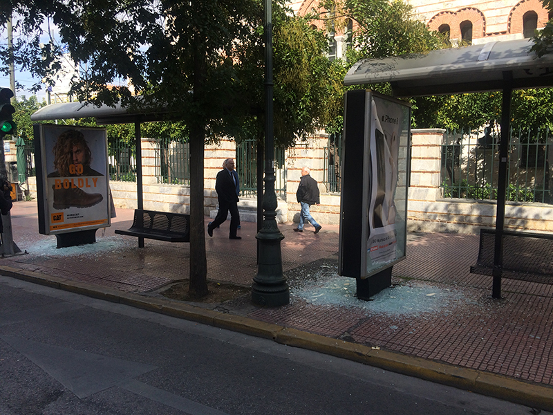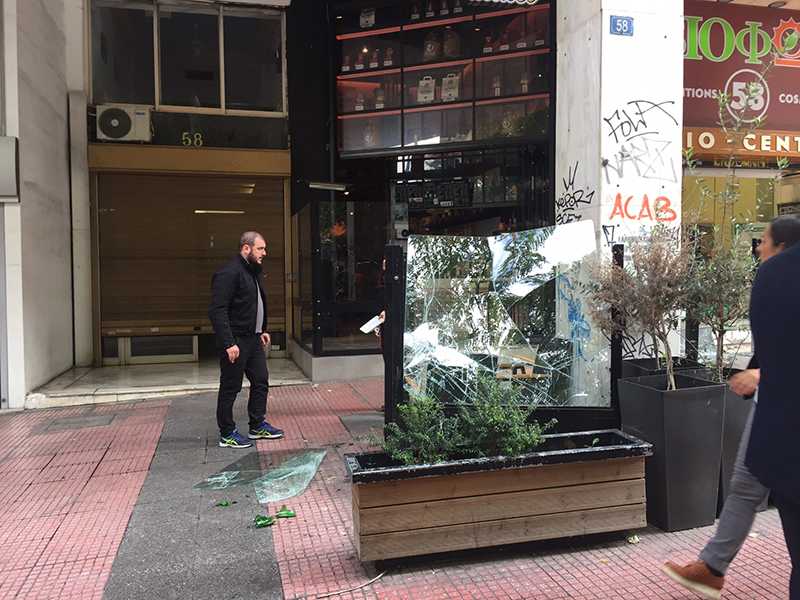 Κουκουλοφόροι έσπασαν κατάστημα των «Μικέλ» στην οδό Πανεπιστημίου 58 και ένα ΑΤΜ στην Eurobank στην Κοραή.