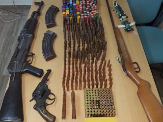 Στις έρευνες βρέθηκαν και κατασχέθηκαν ένα καλάσνικοφ, ένα περίστροφο, ένα κυνηγετικό όπλο, 527 πλήρη φυσίγγια διαφόρων τύπων και διαμετρημάτων, δύο γεμιστήρες τύπου καλάσνικοφ, 3 κάλυκες, βραδύκαυστο φυτίλι, ένα μαχαίρι και τέσσερα αρχαία νομίσματα τα οποία εμπίπτουν στο νόμο περί Προστασίας Αρχαιοτήτων.