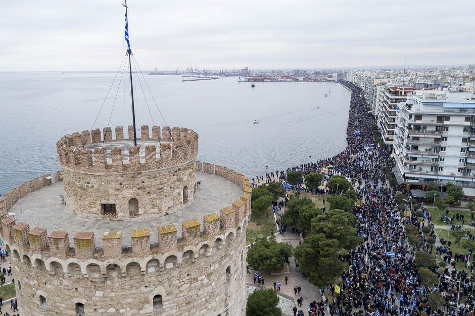 Νωρίς το μεσημέρι στη 13:00, πριν καν ξεκινήσει καλά καλά, η αστυνομία έκανε λόγο για περίπου 90.000 συγκεντρωμένους και 284 πούλμαν. Με κεντρικό σύνθημα «η Μακεδονία είναι Ελλάδα», όσο περνούσε η ώρα, όλο και περισσότεροι διαδηλωτές άρχισαν να συγκεντρώνονται από το λιμάνι μέχρι το Μέγαρο Μουσικής.