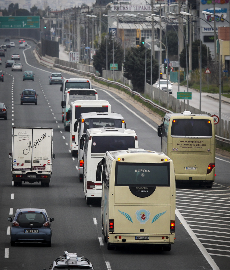 Για τα λεωφορεία που θα κατευθύνονται στην Αθήνα από την Νότιο Ελλάδα, μετά από τα Διόδια Μάνδρας, αυτά θα συνοδεύονται (κατά ομάδες των 10 ή 15 λεωφορείων) από περιπολικά της Τροχαίας και της Αμέσου Δράσεως και θα οδηγούνται μέσω των λεωφόρων Κηφισού και Ποσειδώνος στη λεωφόρο Συγγρού.