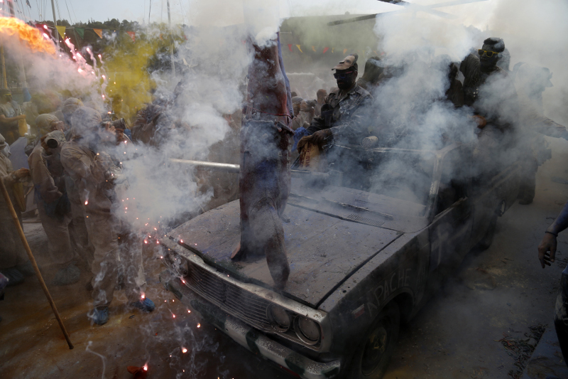 Στην Αλεξανδρούπολη, ένας κάτοικος μεταμφιέζεται σε Μπέη και περιδιαβαίνει την πόλη μοιράζοντας ευχές για το καλό.