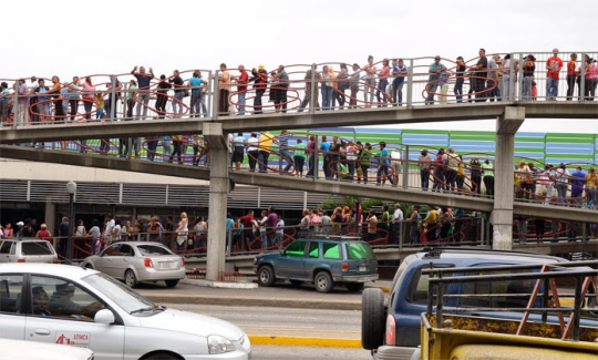Σε τραγικά επίπεδα είναι η επισιτιστική κρίση στη Βενεζουέλα. Όπως δείχνουν οι φωτογραφίες πολίτες στο Καράκας σχηματίζουν ουρές εκατοντάδων μέτρων για να μπουν σε σούπερ μάρκετ.