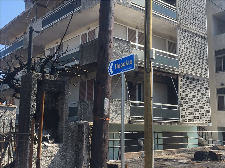 Κατεστραμμένα σπίτια, καμμένα δένδρα, άνθρωποι που περπατούν βουβοί με μαυρισμένη τη ψυχή τους από το θρήνο για την απώλεια συγγενών και φίλων. Αυτή είναι η εικόνα που συναντά κάποιος στη Λεωφόρο Ποσειδώνος στο Μάτι, από όπου πέρασε η πύρινη λαίλαπα στις 23 Ιουλίου, με αποτέλεσμα να έχουν χάσει τη ζωή τους μέχρι σήμερα 99 άνθρωποι, οι περισσότεροι από τη φωτιά και κάποιοι από πνιγμό, όταν βούτηξαν στη θάλασσα για να γλιτώσουν.