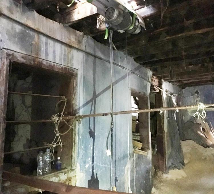 διάφορα εργαλεία (βαριοπούλα, αξίνες, σκεπάρνια, σιδερένιος λοστός) και