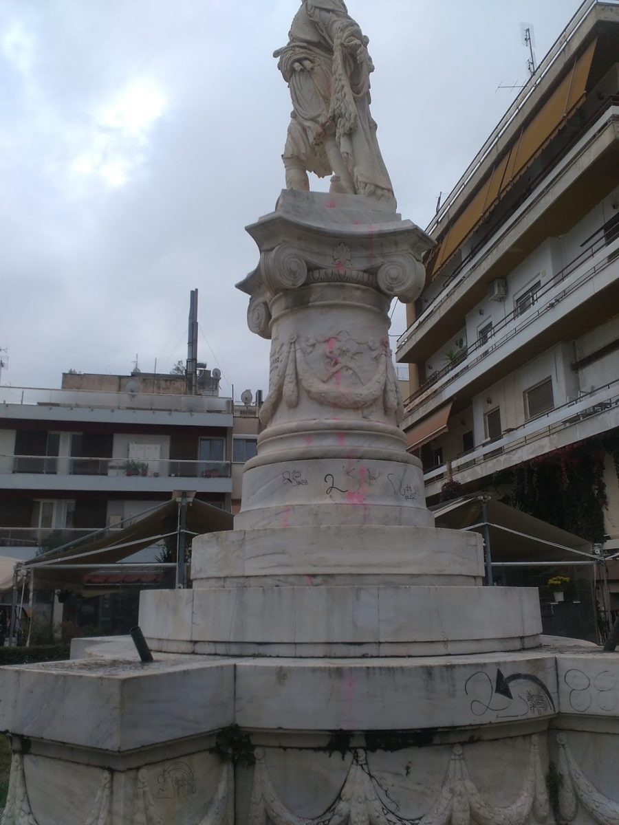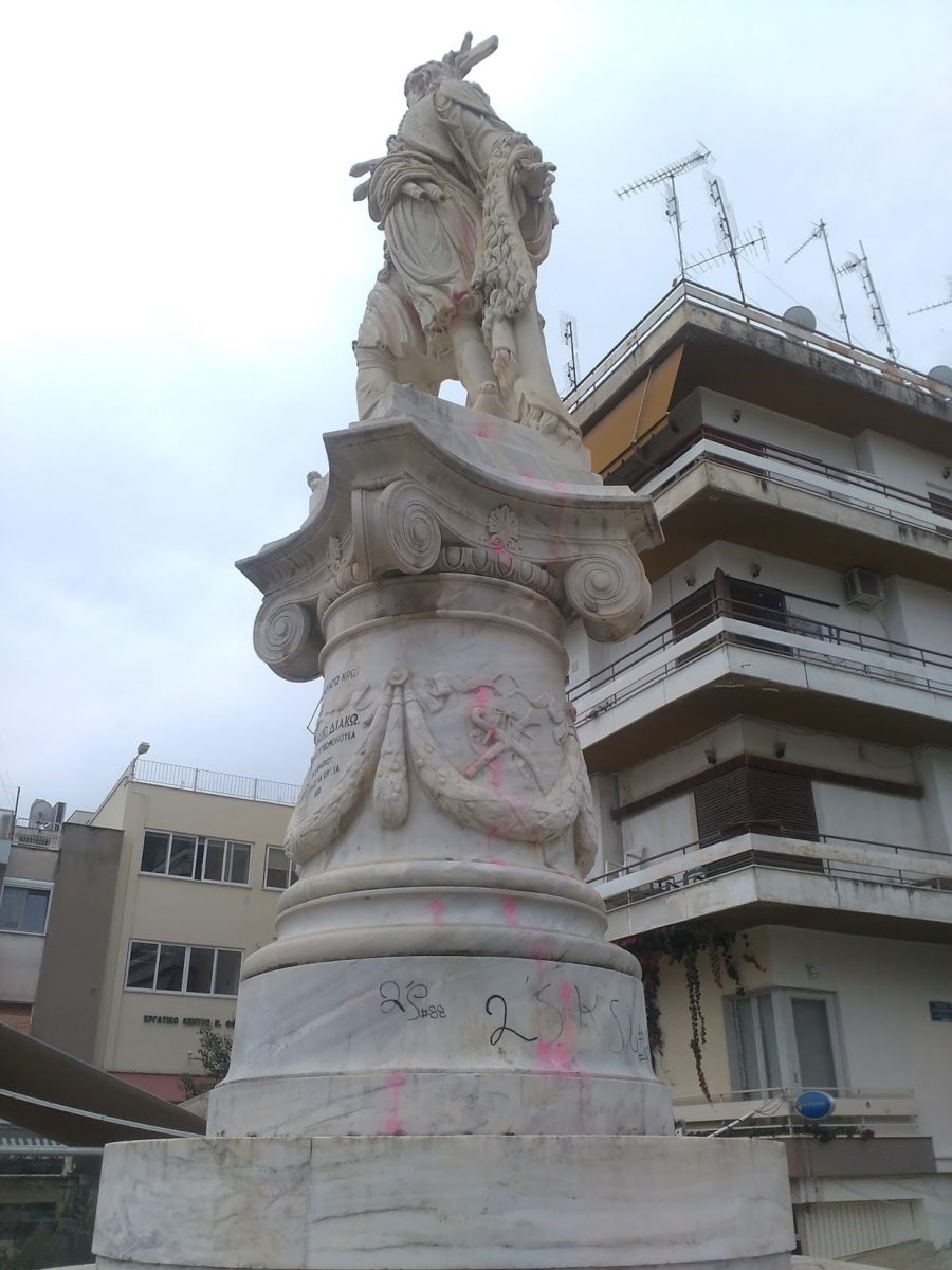 Θυμίζουμε ότι πριν από δεκαπέντε περίπου ημέρες άγνωστοι έσπασαν το μαρμάρινο παγκάκι δίπλα στο άγαλμα ενώ συχνά είναι τα φαινόμενα συμπλοκής νεαρών κυρίως ατόμων το βράδυ.