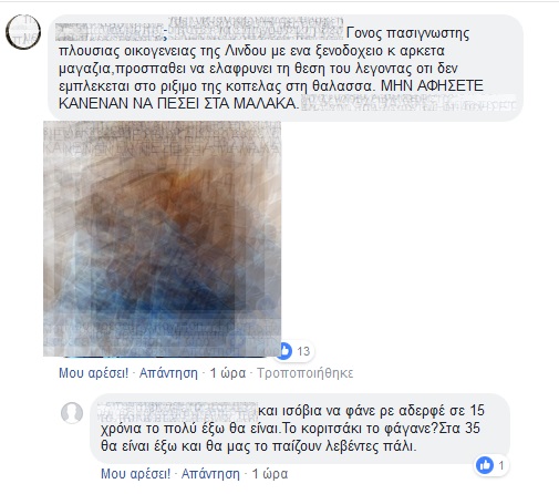 Πρόκειται για τον Μανώλη Κούκουρα, 20 χρόνων που ζει στη Λίνδο, η οικογένεια του έχει τρία – τέσσερα καταστήματα υγειονομικού ενδιαφέροντος στους Πεύκους, εστιατόρια, κινέζικο εστιατόριο, καφετέριες και μικρό ξενοδοχείο.