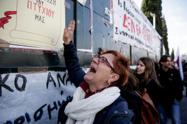 Οι συγκεντρωμένοι, χαρακτηρίζοντας τα κριτήρια μοριοδότησης ως «κριτήρια απολύσεων» δηλώνουν ότι το νέο σύστημα διορισμών που προωθεί το υπουργείο Παιδείας υποβαθμίζεται το πτυχίο τους και παράλληλα τους «αναγκάζει σε περαιτέρω τίτλους σπουδών και κατά συνέπεια σε επιπλέον έξοδα».
