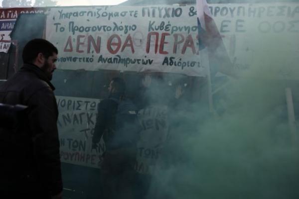 Ένταση επικράτησε στη συγκέντρωση διαμαρτυρίας που πραγματοποιήσαν περίπου 200 εκπαιδευτικοί έξω από το υπουργείο Παιδείας, διαμαρτυρόμενοι για το σχεδιαζόμενο νέο σύστημα διορισμών βάσει μοριοδότησης που εξήγγειλε η κυβέρνηση.