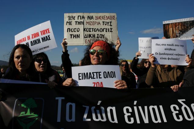 Οι συγκεντρωμένοι κρατούσαν πλακάτ με συνθήματα όπως «Είμαστε όλοι ζώα» και «Μέχρι κάθε ζώο να είναι ελεύθερο» και ζήτησαν να αποδοθούν ευθύνες.