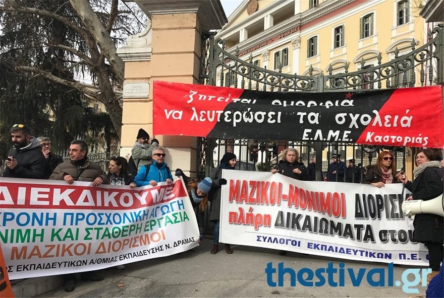 Στο υπουργείο Μακεδονίας – Θράκης κατέληξε η πορεία που πραγματοποίησαν οι εκπαιδευτικοί στο κέντρο της Θεσσαλονίκης.