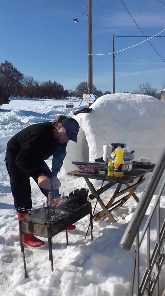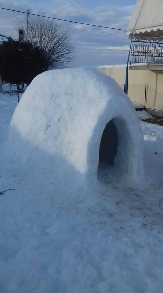 Ιγκλού μέσα στα χιόνια έφτιαξε ένας κάτοικος της Πρέβεζας και το γιόρτασε κάνοντας μπάρμπεκιου με τα παιδιά του.
