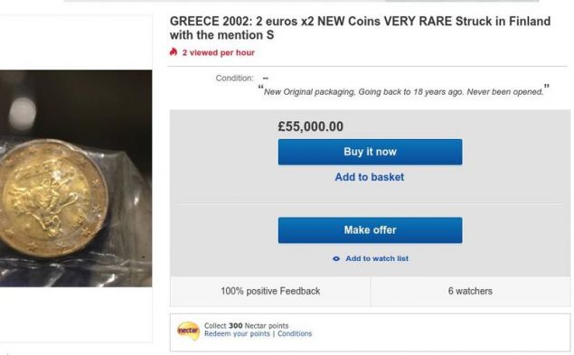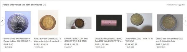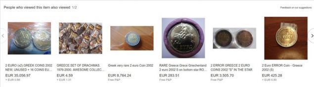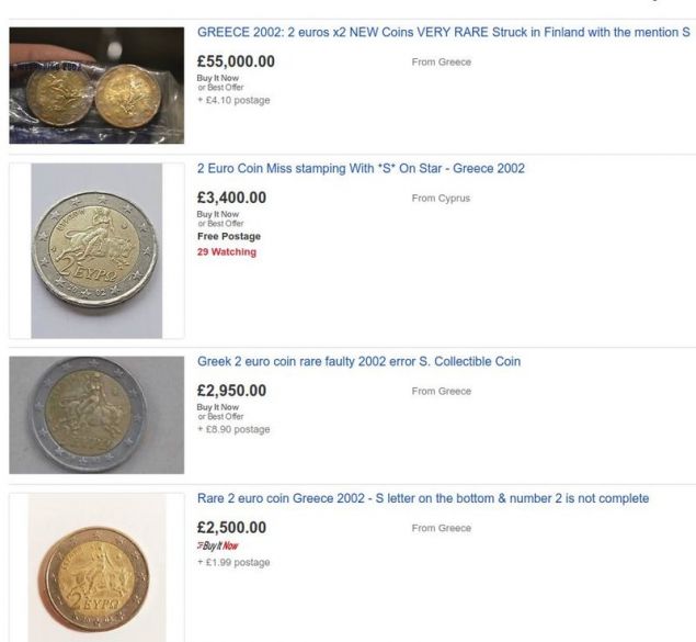 Η πιο τρανή περίπτωση είναι η δημοπρασία που ξεκίνησε προ ημερών ένας Ελληνας, από την Αθήνα, ο οποίος ζητά το ποσό των 62.400 ευρώ για τα σπάνια -όπως θεωρούνται- νομίσματα του 2002.