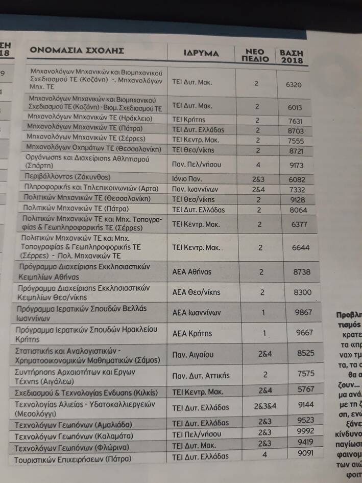 1. Πράσινες (ελεύθερης πρόσβασης) και κόκκινες (εισαγωγής με Πανελλαδικές) σχολές: