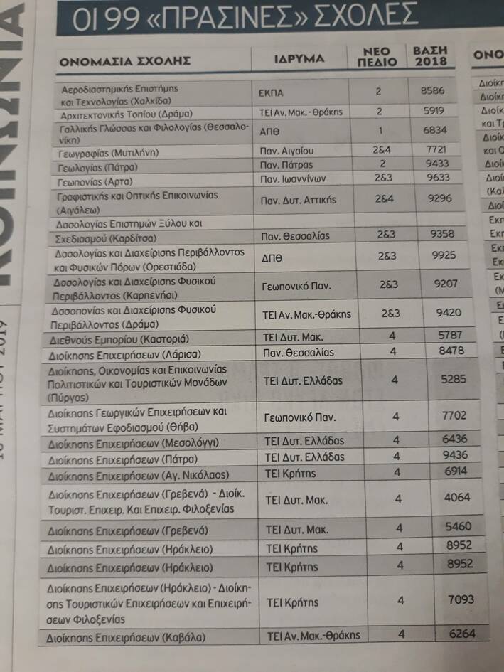 Σήμερα, τα τμήματα που θα μπορούσαν να χαρακτηριστούν «πράσινα» είναι 99, σε πανεπιστήμια και ΤΕΙ, στα οποία πέρυσι εισήχθησαν με βαθμούς κάτω της βάσης, δεκάδες υποψήφιοι (δηλαδή ακόμα και 4.000 ή 5.000 μόρια)